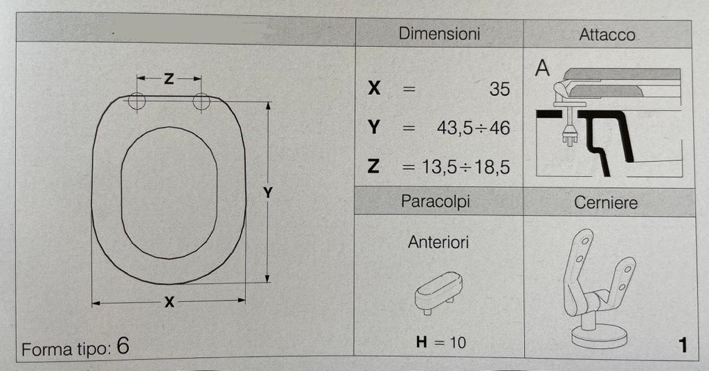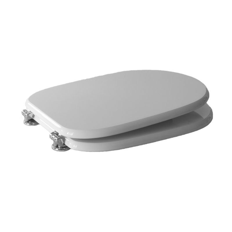 Sedile MDF con anima in truciolare e finitura bianca lucida, compatibile con sanitari Linda, con cerniere in metallo cromato ad incasso dall’alto per installazione facile e pulita.