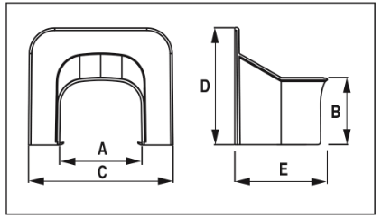 TERMINALE ANGOLO TA75-OPT  A:78mm B:58mm C:126mm D:100mm E:85mm
